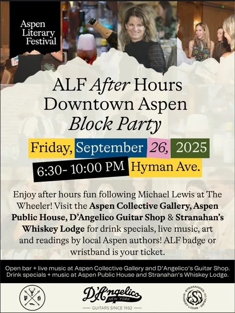 Friday, 9/26: Join me for a party celebrating local writers at the first ever Aspen Literary Festival! The block party is free and includes readings, art, music, and other treats!